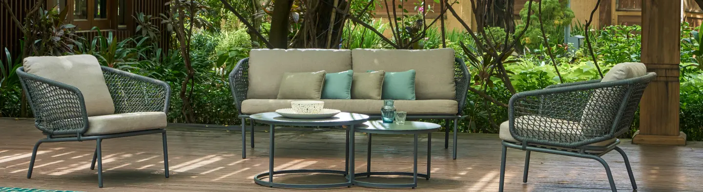Take our Eagle range of outdoor sofas, for example; this is the ideal product for what we are trying to achieve. This particular sofa set is made from 100% Recycled Claim Standard (RCS) recycled plastic, wherein discarded plastic waste is reclaimed, shredded, pelletised, and made into wicker rope - which you can see on this gorgeous outdoor setting. We are always on the hunt for new designs and new processes that can elevate our product selections.